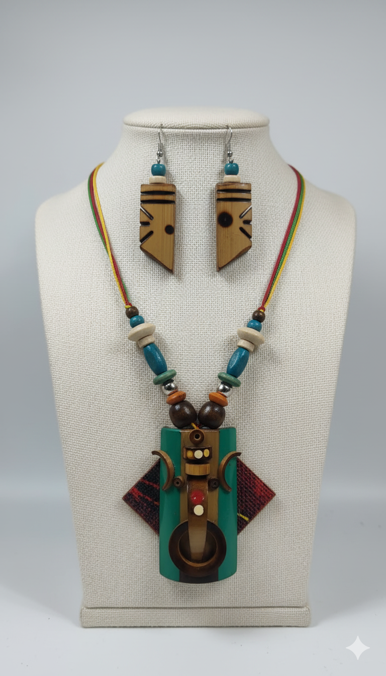 Bamboo & Wood Jewellery Set – Handcrafted Necklace & Earrings Combo