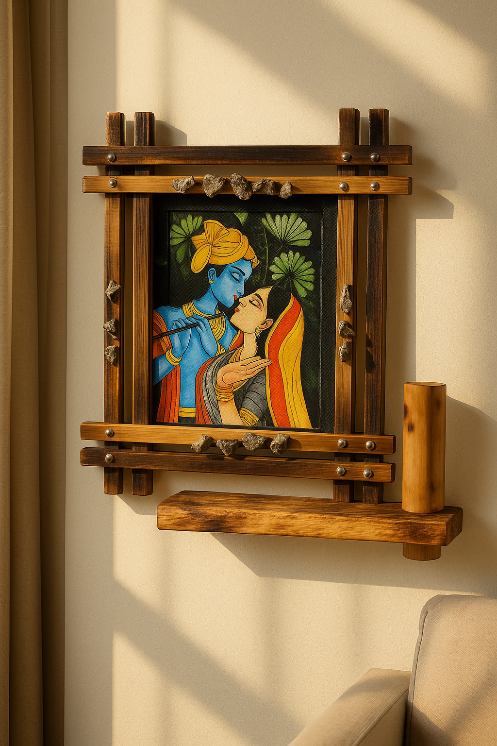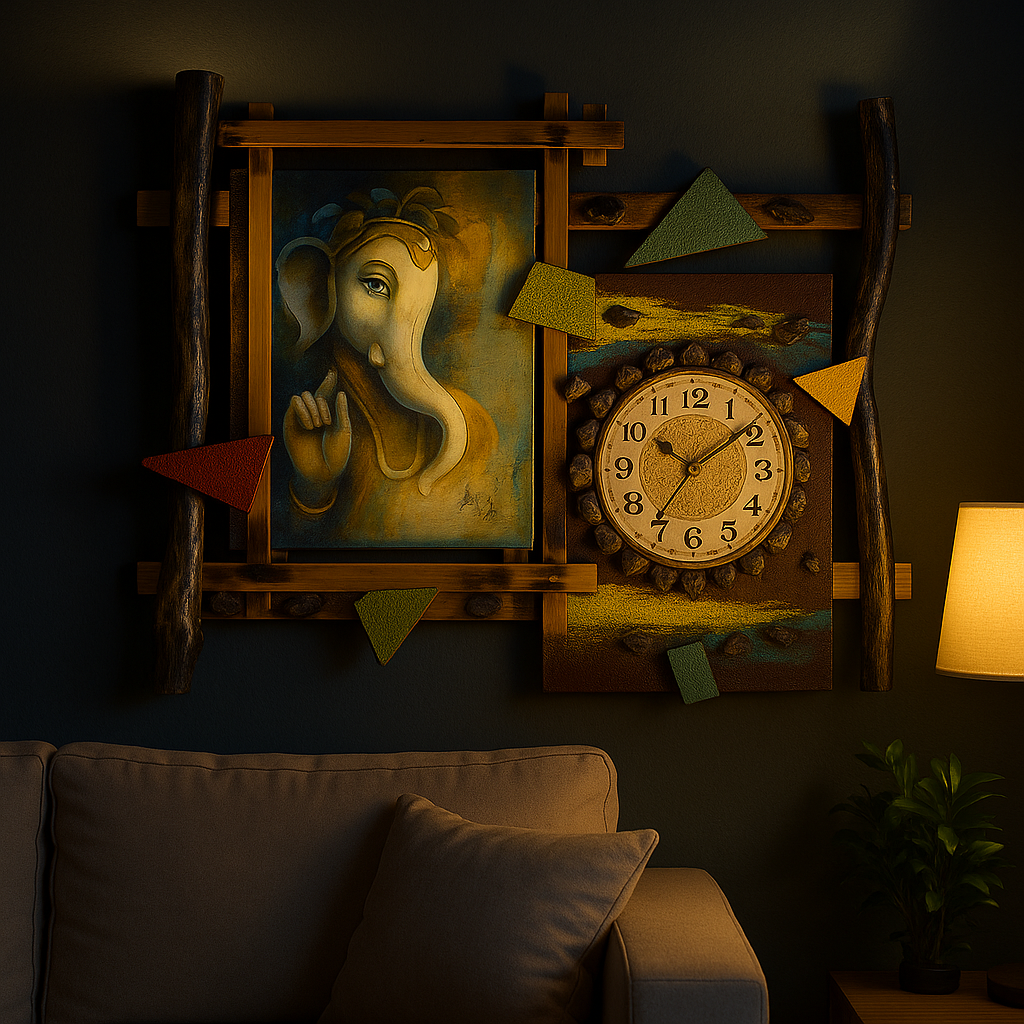 Bring devotion and functionality together with this Handmade Bamboo Ganesh Wall Hanging. Featuring a vibrant Lord Ganesha painting, natural stone detailing, and a working decorative clock, this eco-friendly wall décor is perfect for homes, pooja rooms, and gifting.